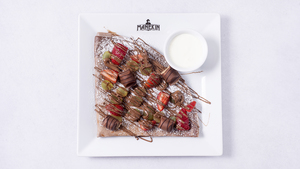Kinder bueno, mascarpone, manekinella orzechowa, owoce sezonowe, sos