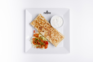 Burrito (ostry) – szarpana wieprzowina, pomidory, fasola, kukurydza, szczypior, ser żółty, habanero mayo