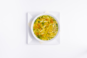 Rosół z makaronem naleśnikowym i natką pietruszki