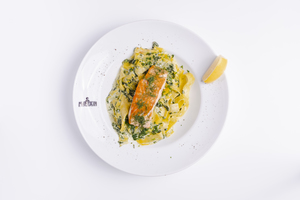 Łosoś grillowany ze szpinakiem i śmietaną