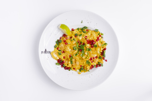 Kurczak curry, mleczko kokosowe, granat, płatki miodowe (ostre)