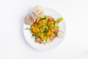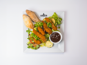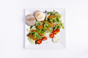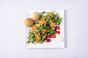Sałaty z kurczakiem w chrupiącej panierce z warzywami